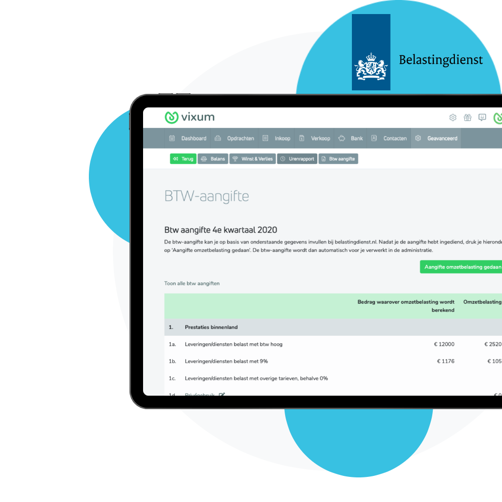 De Automatische winstaangifte module is een handige tool die het proces van het indienen van inkomstenbelasting-aangifte vereenvoudigt. Het enige wat je hoeft te doen is je Vixum boekhouding te exporteren vanuit de unieke AWA-module en deze vervolgens te uploaden bij de Belastindienst. Vervolgens wordt de inkomstenbelasting automatisch berekend bij de Belastingdienst.